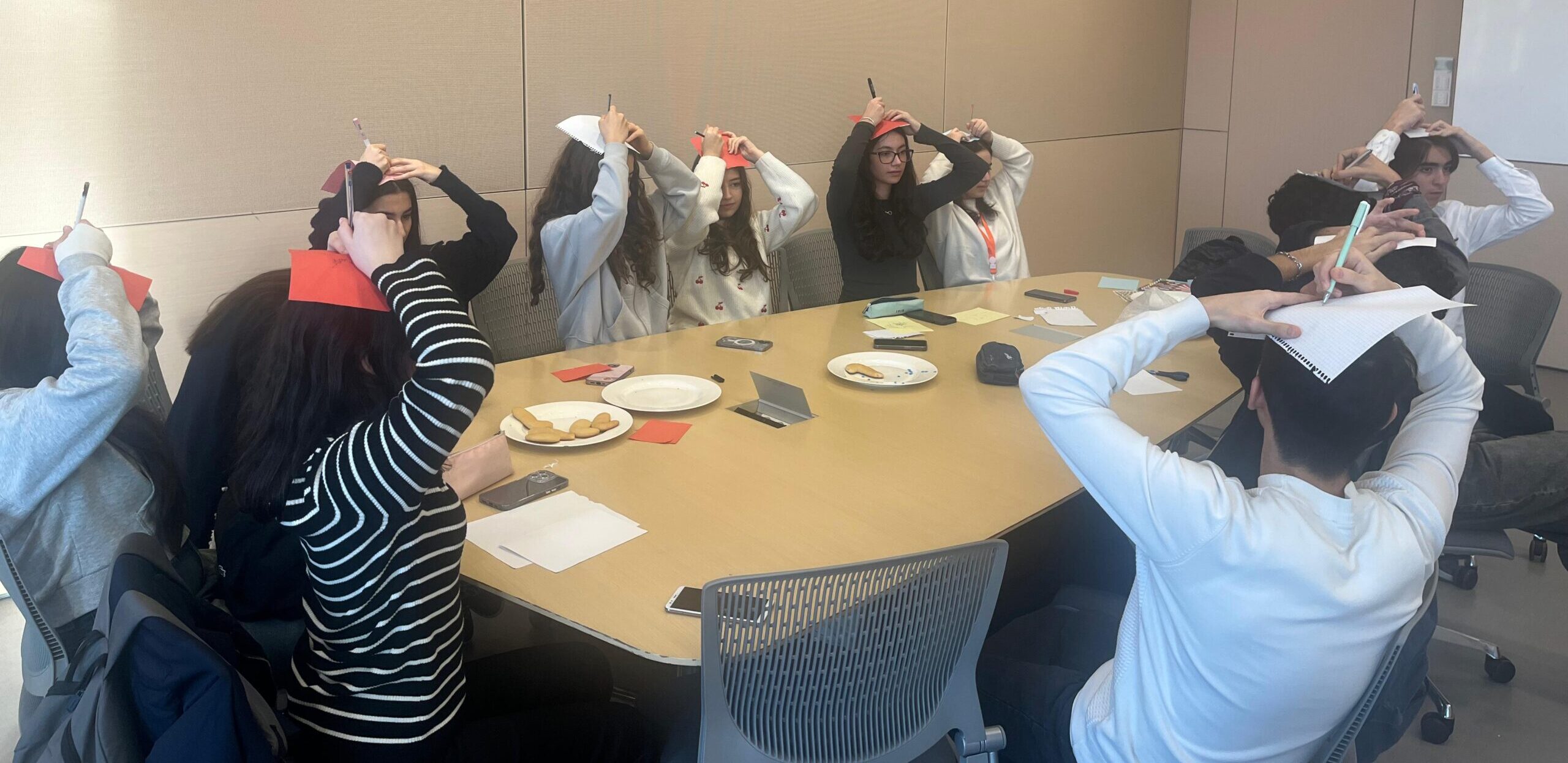 High school students were involved in my event (10-11th graders). For the event, I prepared a cultural presentation where I talked about how I spent Christmas in America, which was (and still is) a memory that seemed like a dream. I also prepared 70 cookies (a recipe I learned in America) with my family for the event. Simeon Michelson – a Fulbright English Teaching Assistant at ADA University, originally from Nashville, Tennessee, who co-organized the event with me – and I prepared some classical American games for high schoolers to play. “Pin the tail on the cow” seemed the most fun to the students. Students also loved the game where they drew a Christmas tree…. on their head!
